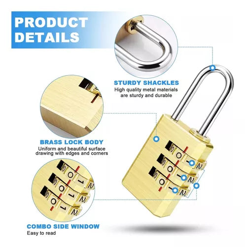 Prueba nuestro candado de latón de 3 dígitos especial para resguardar objetos importantes bajo buena seguridad.