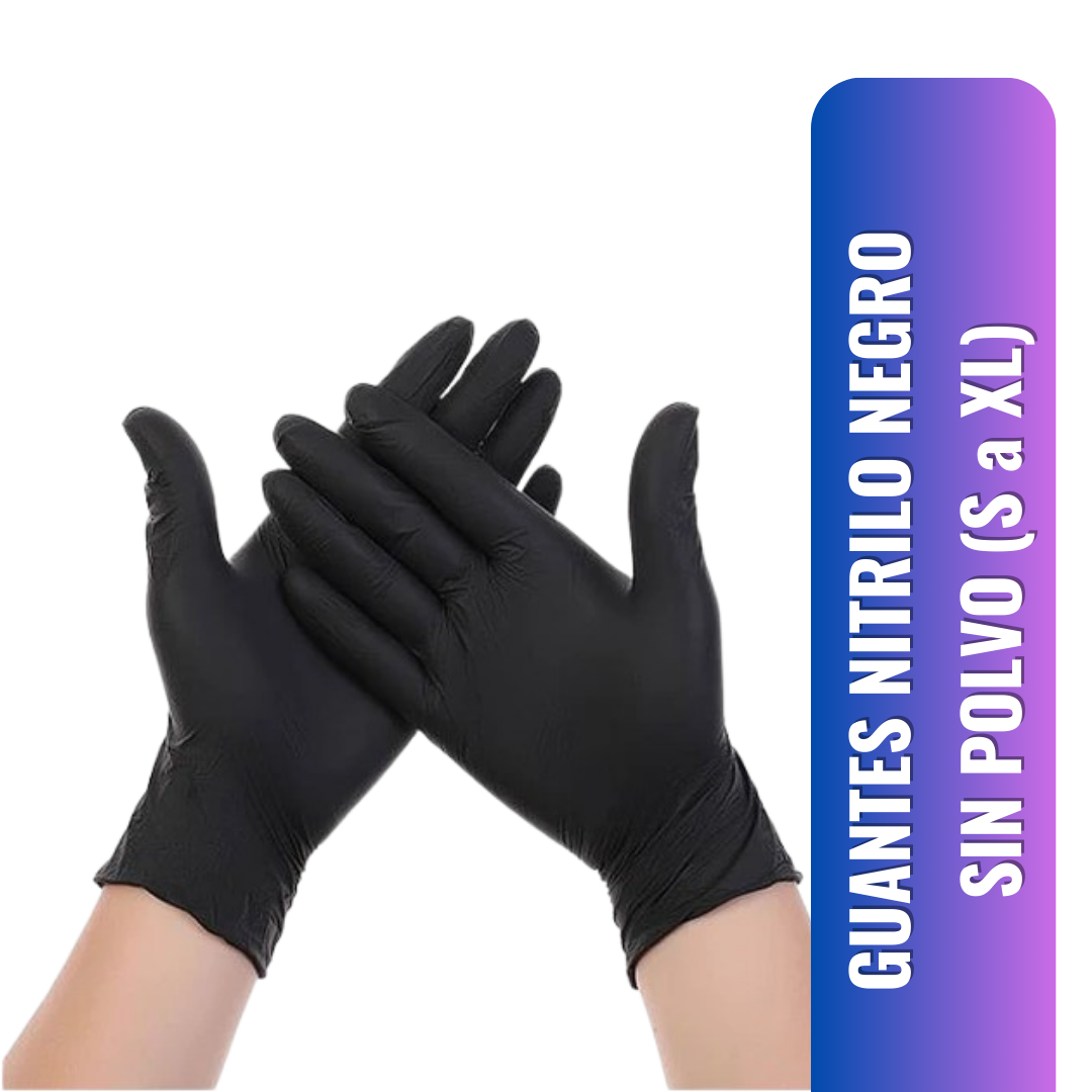 GUANTES NITRILO NEGRO SIN POLVO x100 UNIDADES (S a XL)
