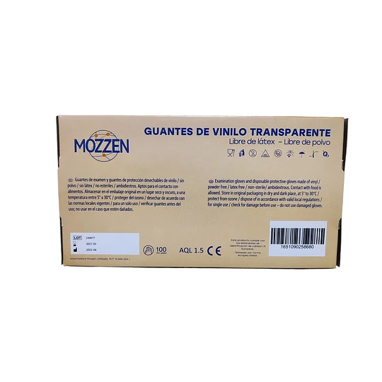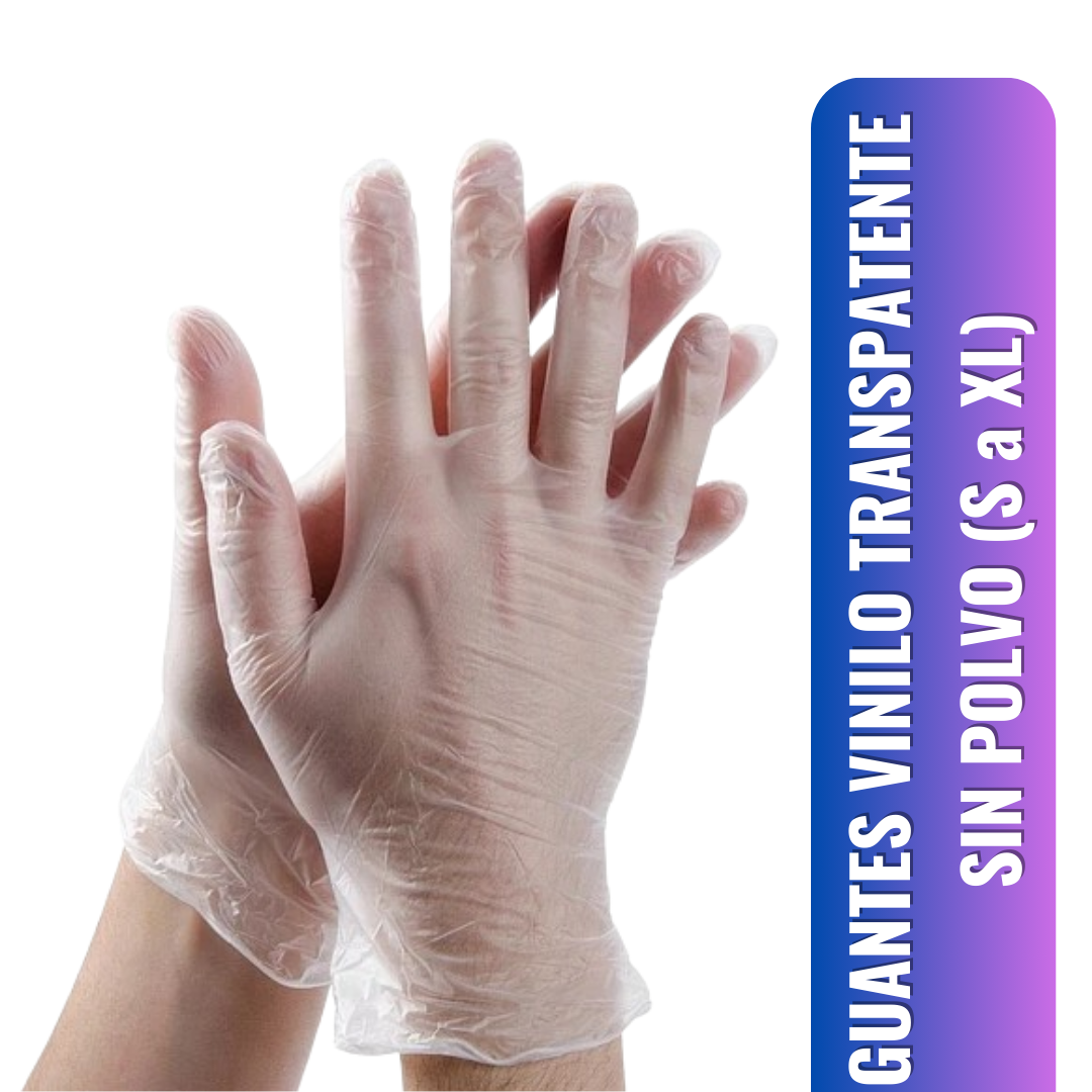 GUANTES VINILO TRANSPARENTES SIN POLVO x100 UNIDADES (S a XL)