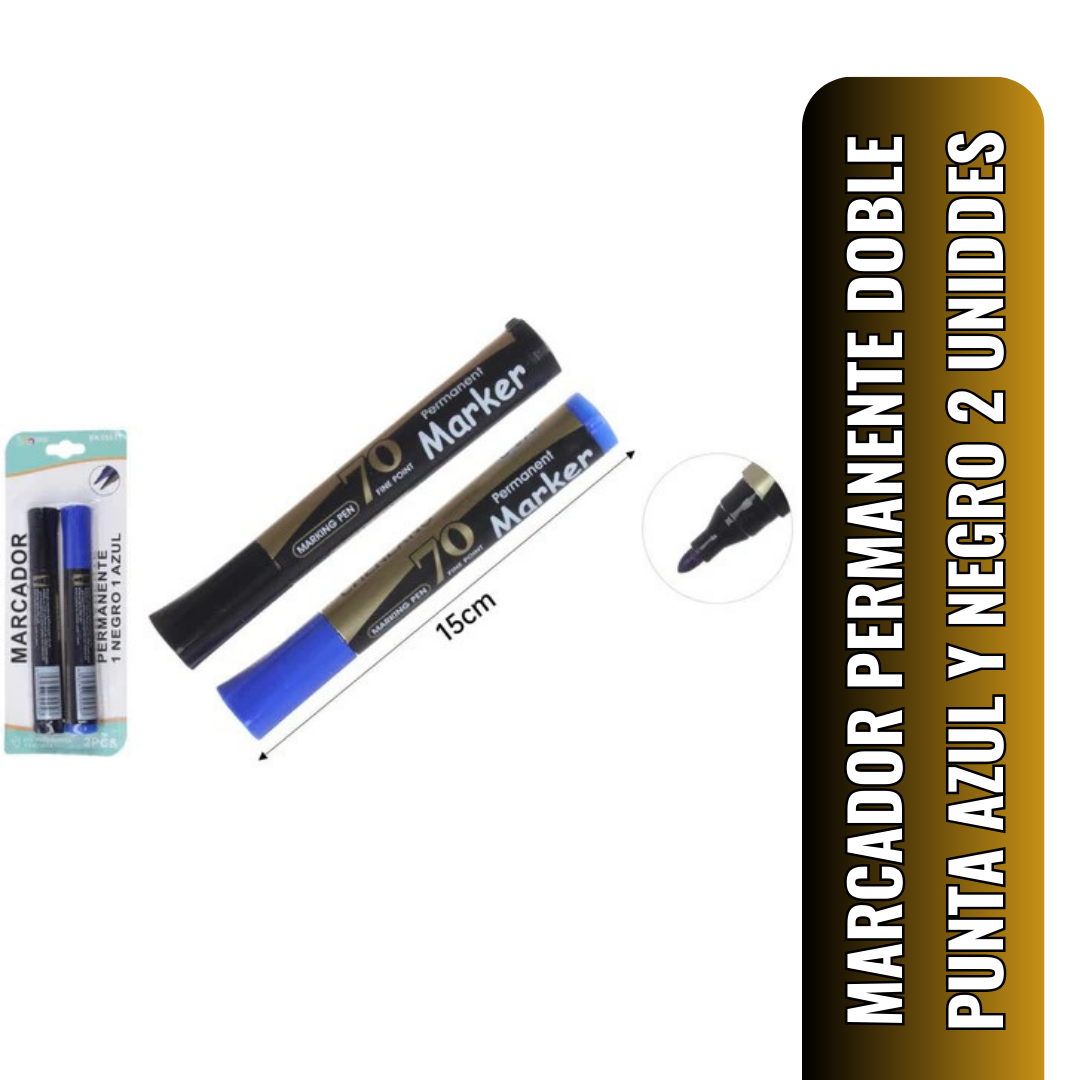 MARCADOR PERMANENTE AZUL Y NEGRO 2 UNIDADES