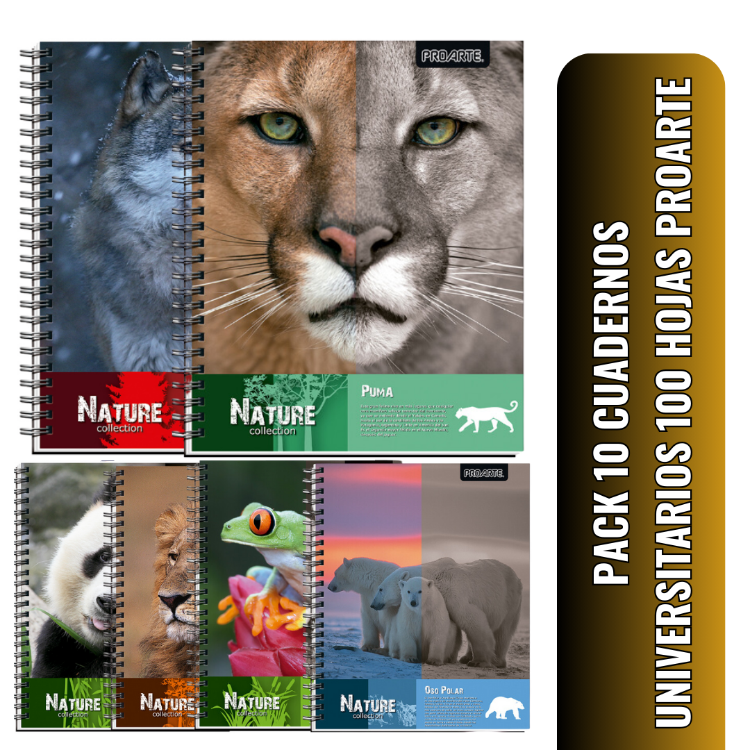 PACK CUADERNOS UNIVERSITARIOS NATURE 10 UNIDADES 100 HOJAS