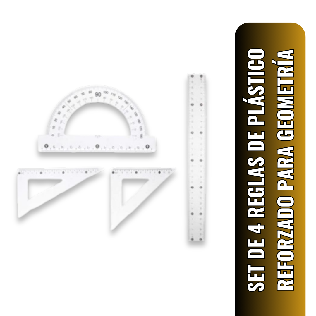 SET DE 4 REGLAS DE PLÁSTICO REFORZADO PARA GEOMETRÍA